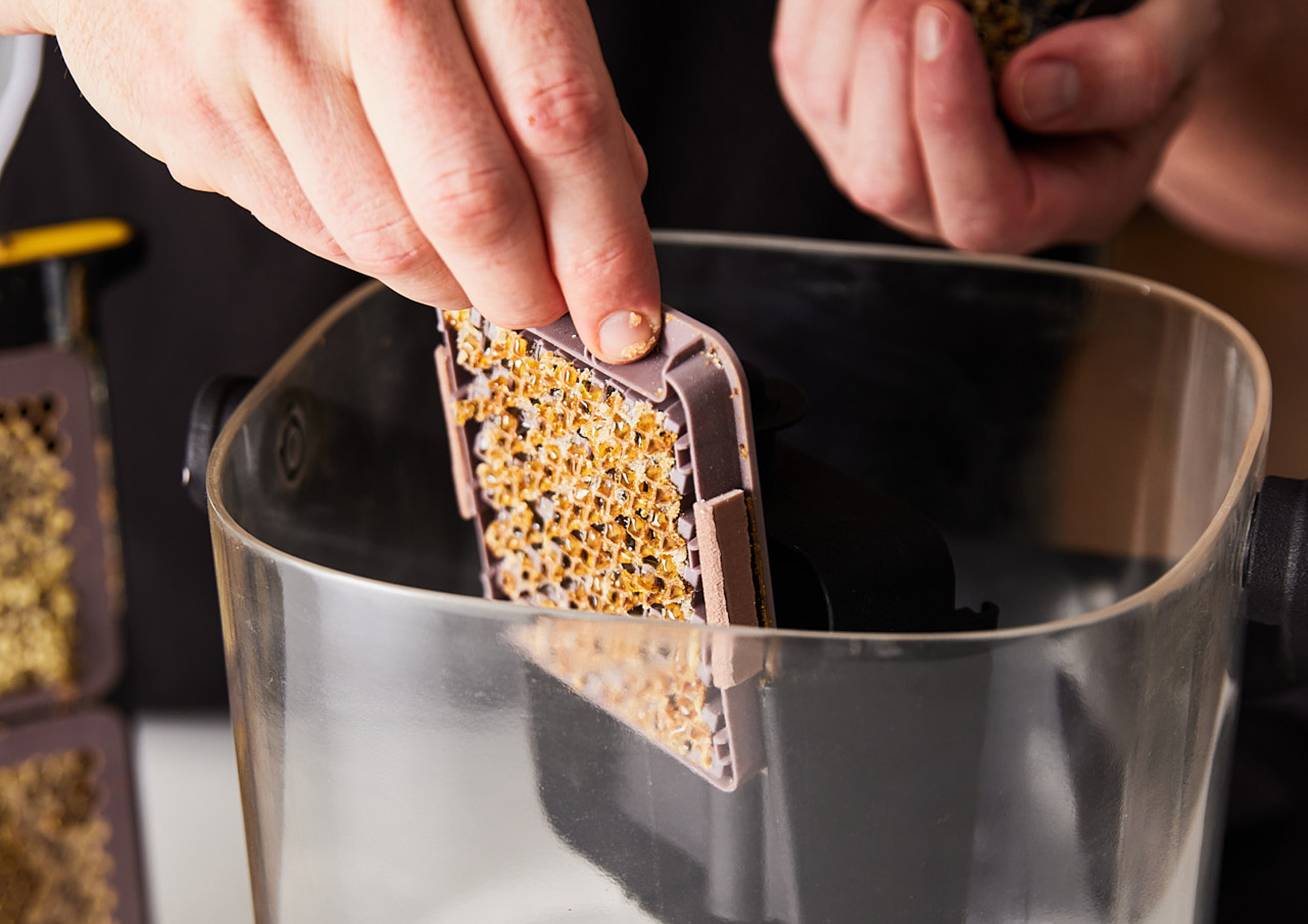 The HiveKeepers frame is designed to drop straight into a standard hive box, matching the exact dimensions of a traditional frame. Beekeepers can simply swap in the cassette frame without modifying their existing setup. Each cassette is removable, so you can harvest only what you need and leave the remaining honey in the hive for the bees.